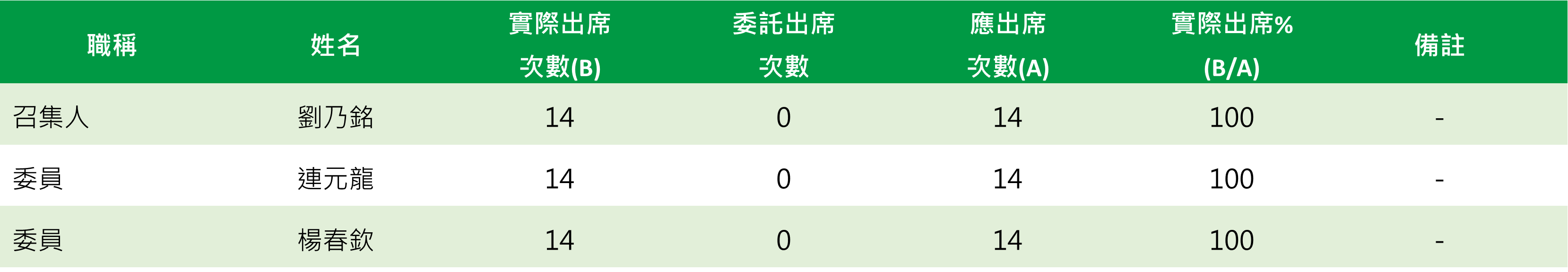 截至2025年12月24日,已開會14次,委員出席情形如下: