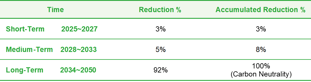 Establish carbon reduction goals listed in the table below based on the GHG inventory results: