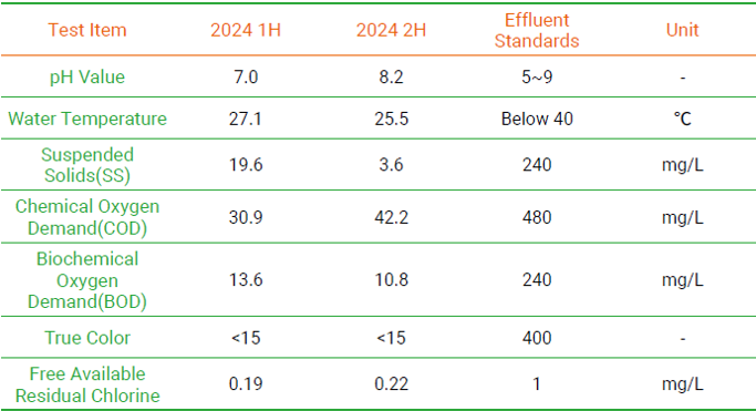 The Company's main businesses include steel structure production and assembly, and container maintenance and cleaning. The Taipei Head Office serves as the administrative unit, and the steel structure manufacturing at Hsinchu and Xinying factories do not generate industrial wastewater. The wastewater produced during container cleaning processes at Kaohsiung Factory undergoes 16 treatment steps, including sedimentation, rapid mixing, slow mixing, chemical precipitation, equalization, and concentration/dehydration, to meet discharge standards before being discharged to the industrial wastewater treatment plant in the industrial park. The Kaohsiung Factory conducts regular annual maintenance of its treatment equipment and commissions a certified inspection agency to perform water quality testing to ensure that discharged water complies with legal standards and does not negatively impact the environment. The Company will continue to operate in compliance with environmental regulations, maintaining its goal of zero pollution and zero leakage.